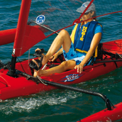The Hobie Mirage Adventure Island is a trimaran sailing kayak equipped with the Mirage Hobie Cat revolutionary patented pedal propulsion system. Born from the observation of penguin fins, the Mirage system develops a unique performance. At the same time kayak, sailing boat, trimaran and fishing boat, the Mirage Adventure Island concentrates all of the configurations to vary pleasures along with desires and to top up with strong sensations!